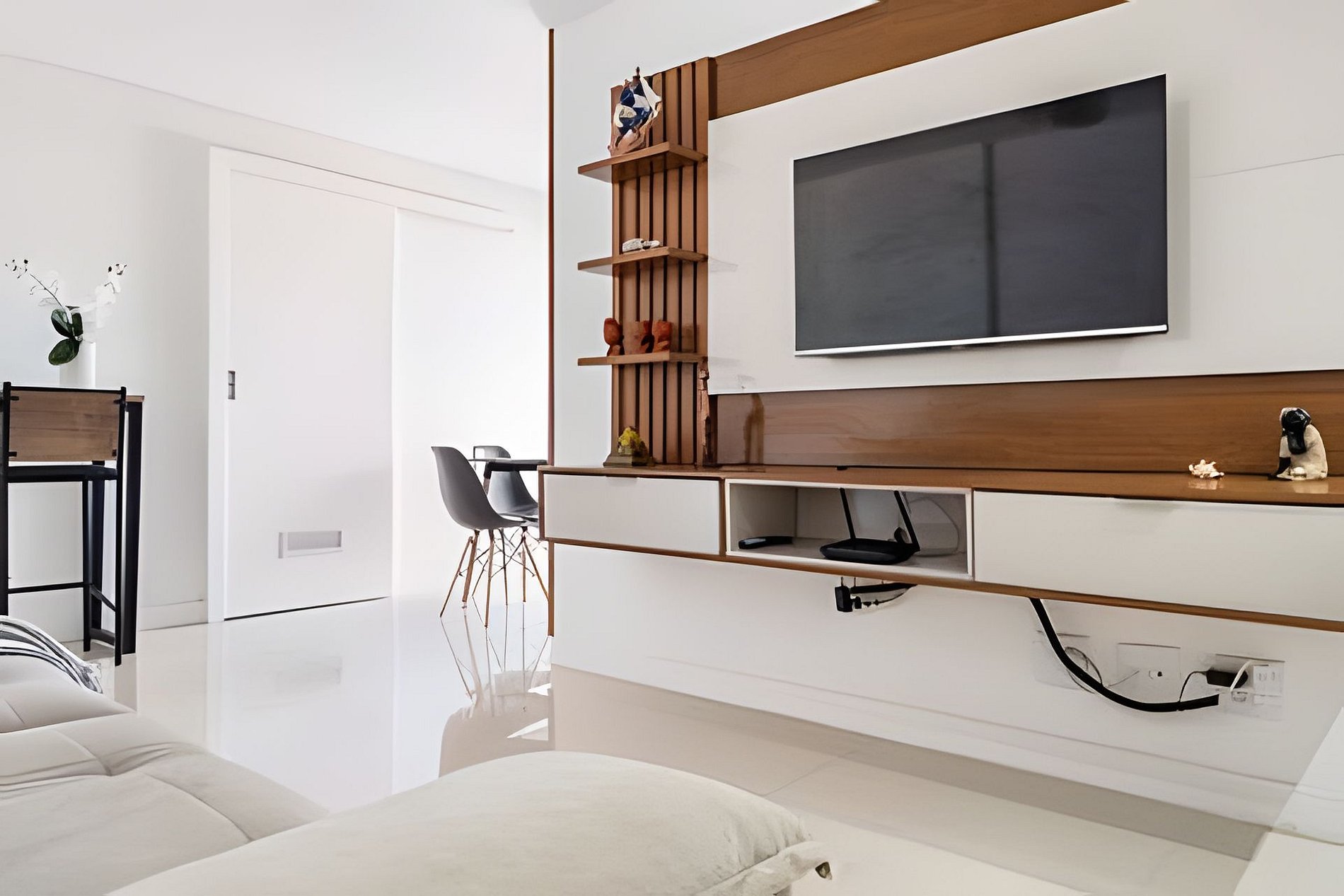 Apartamento de 2 quartos sendo 1 suíte , os 2 possuem ar-condicionado , total de 2 camas de casal , 1 de solteiro com auxiliar , cozinha toda equipada, sala com tv smart e sofá retrátil , varanda espaçosa com churrasqueira elétrica , internet/Wi-Fi - Netflix , Globoplay . No condomínio o hóspede terá acesso às piscinas , saunas , sala de jogos , academia , cinema e 2 vagas na garagem Ambiente tranquilo, agradável e familiar