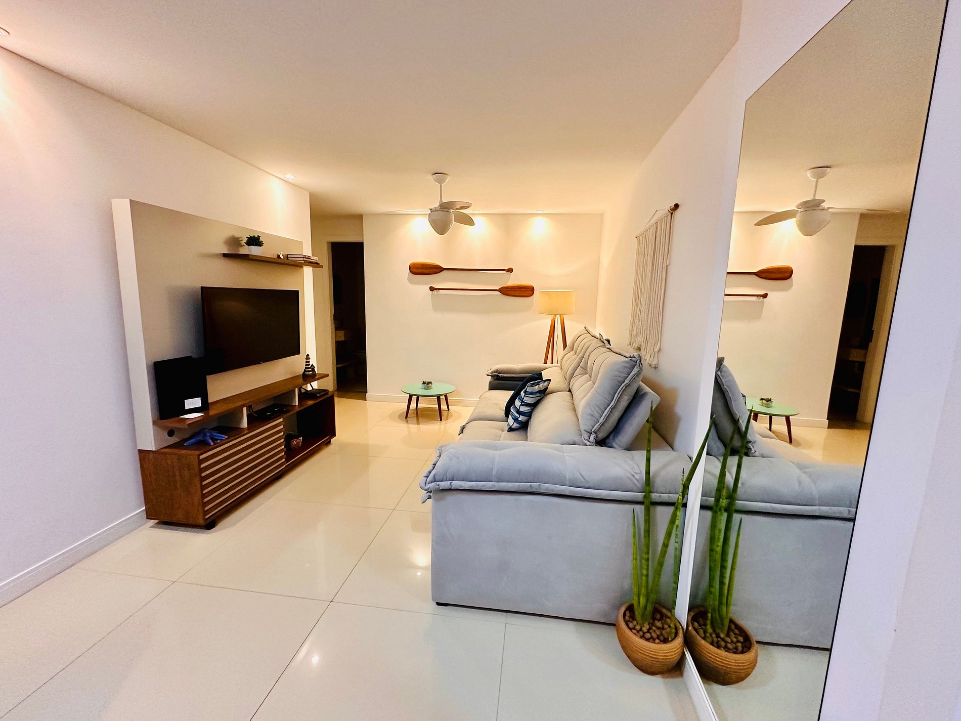 O apartamento é lindo e a decoração também.