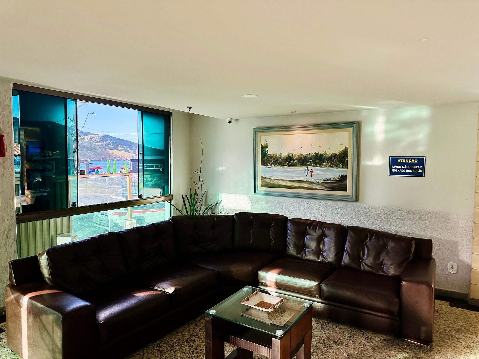 - Ao chegar da praia, usar a entrada de banhistas e retirar a areia no lava-pés. - Não entrar molhado no elevador. - Não fumar no apartamento (nem na janela, por favor). Para fumar, pode usar o terraço. - Por regra do condominio, não pendurar roupas nas janelas.